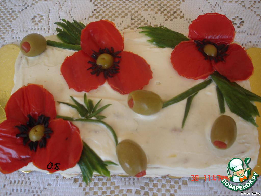 - Перец болгарский (красный + маслинки, огурчик - для украшения )
