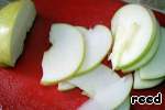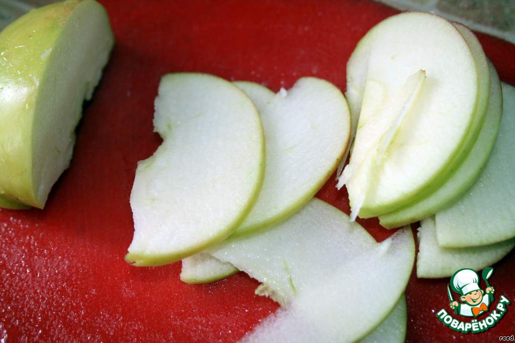 • Из яблок удалить сердцевину и нарезать тонкими дольками