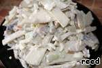 • Смешать все ингредиенты, поперчить и заправить майонезом.