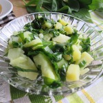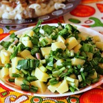 Раз уж зашла речь о салатиках с черемшой, не могу не поделиться простеньким, но вкусным салатиком с этой великолепной сезонной травкой. Салат настолько прост, что многие даже не удостоят его своим вниманием. Я очень люблю черемшу и, учитывая, что ее сезон недолог, когда она появляется, стараюсь готовить с ней как можно больше блюд. Естественно, проще всего приготовить с ней салатик. Самый распространенный вариант в нашей семье - это черемша с огурчиком и яйцом. Но все же хочется разнообразия. Один из вариантов - это черемша с картофелем. Просто до безумия, при этом вкусно и полезно.