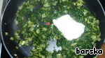 Добавить 50 г творога. Перемешать и выключить огонь.