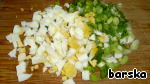 Начинка 1: вареные яйца, зелёный лук и укроп + соль.