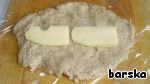 Выкладываем пищевую плёнку, на неё сверху фарш.