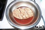 Пропаренную утку обсушиваем и в маринад на 20 мин. Маринуем по 10 мин с каждой стороны.