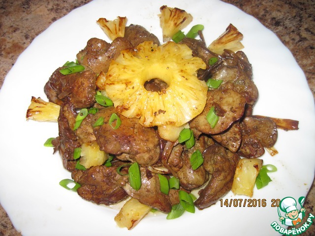 Рецепт «Куриная печень под ананасами»: