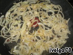 На том же масле обжариваем лук, он впитает в себя весь оставшийся вкус после печени.
