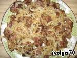 Я в конце жарки добавила яблоки (как и хотела), а саму печень после того как поджарила еще протушила в соке из под ананасов. Остальное как у Вс в рецепте.