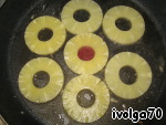 Консервированный ананасы также обжариваем до малейшего золотистого цвета, с двух сторон.