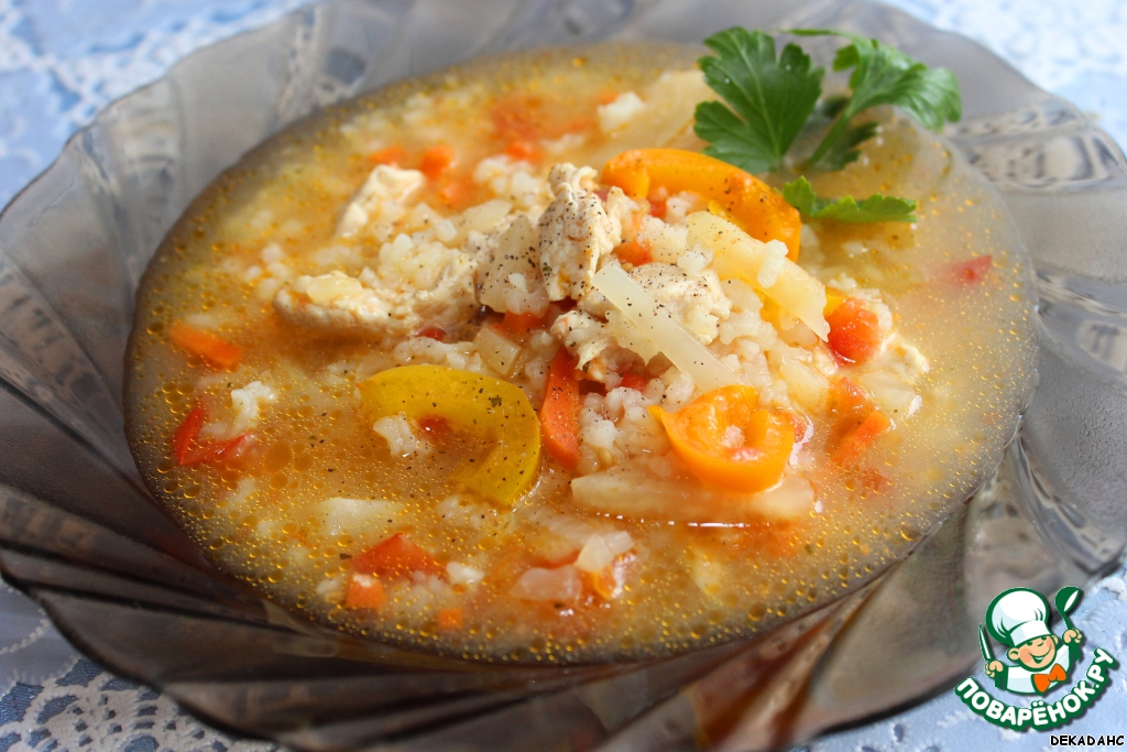 Не смейтесь надо мной, я опять к вам с супом... Ничего не могу с собой поделать, люблю супы. Вот и рыскаю по интернету в поисках привлекательных рецептов, чтобы разнообразить меню. На этот раз выискала вот этот супчик. Оказался очень даже вкусный, легкий. Просто прелесть...