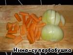Пока бульон варится, подготовить продукты. Сельдерей очистить и нарезать соломкой, 2-ю луковицу нарезать мелко. Помидоры надрезать крест-накрест, залить кипятком на 1 минуту, затем обдать холодной водой и снять кожицу. Удалить семена, а мякоть нарезать кубиками. Перец очистить от семян, нарезать на полоски и затем на ромбики.