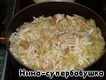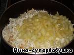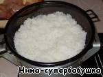 Рис отварить в большом количестве подсоленной воды в течение 10 минут. Откинуть и промыть водой.