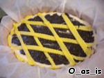Сверху выложила мак (довольно густой консистенции. Зря убрала в холодильник, не смогла равномерно распределить его по творогу, чтобы последний не вылез за края теста, поэтому местами мак лег неравномерно :-( ) От расстройства этот шаг не сфотала.