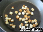 В это время нарезала и на небольшом количестве масла поджарила белый хлеб до золотистой корочки.