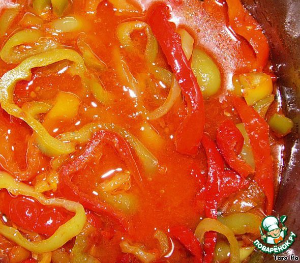 В это время приготовим соус-лечо. Можно, конечно, использовать и готовое, но я люблю делать его сама :-[