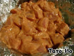 Нарезаем курочку небольшими кусочками - примерно 2х2 см.