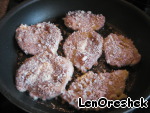 Я жарю мясо на более, чем среднем огне, чтобы не подгорело, но и чтобы не было пареным. Кладите только в хорошо раскаленную сковороду, как если бы Вы жарили блинчики, иначе вся панировка у Вас отлетит и будет все не то.