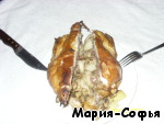 Разрезать курицу и извлечь начинку. Делать все нужно быстро, пока курочка не остыла.
