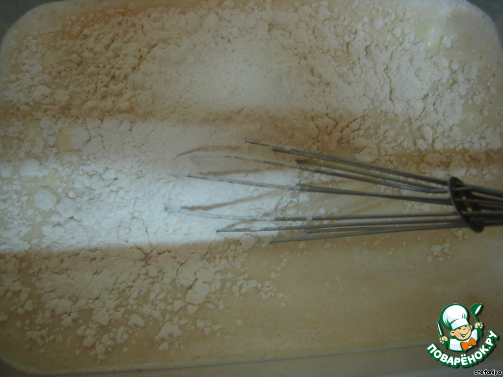 потихоньку добавляем муку, мешая венчиком.