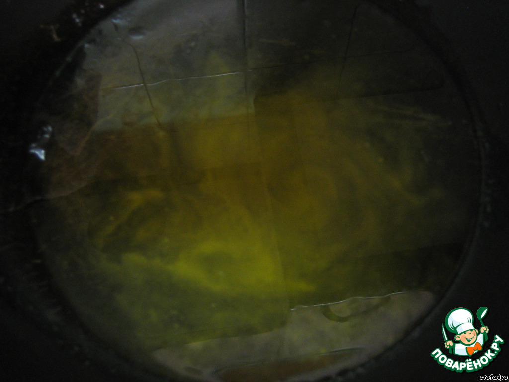 в форму налить жир (растительное масло) так, чтобы покрыть дно не менее, чем на 1 см.