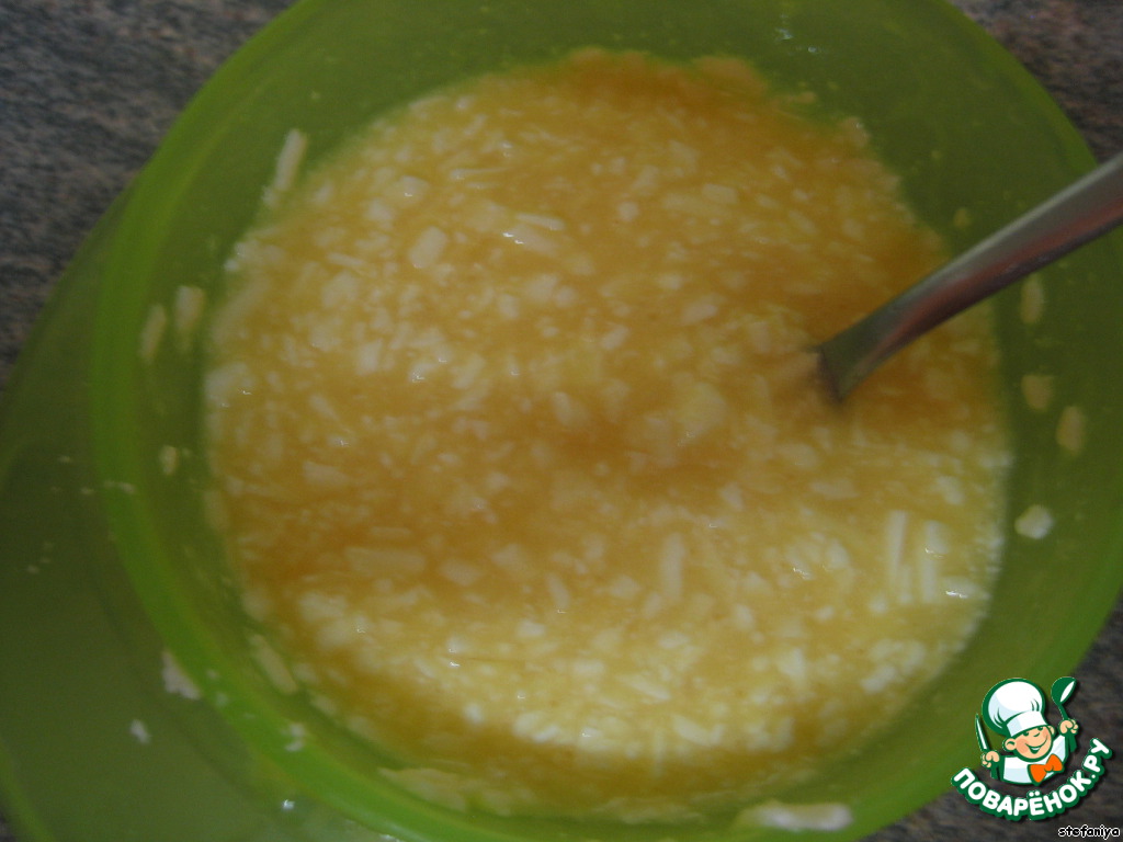 яйцо смешиваем с брынзой (я ещё добавила яйцо, но можно и с одним!)
