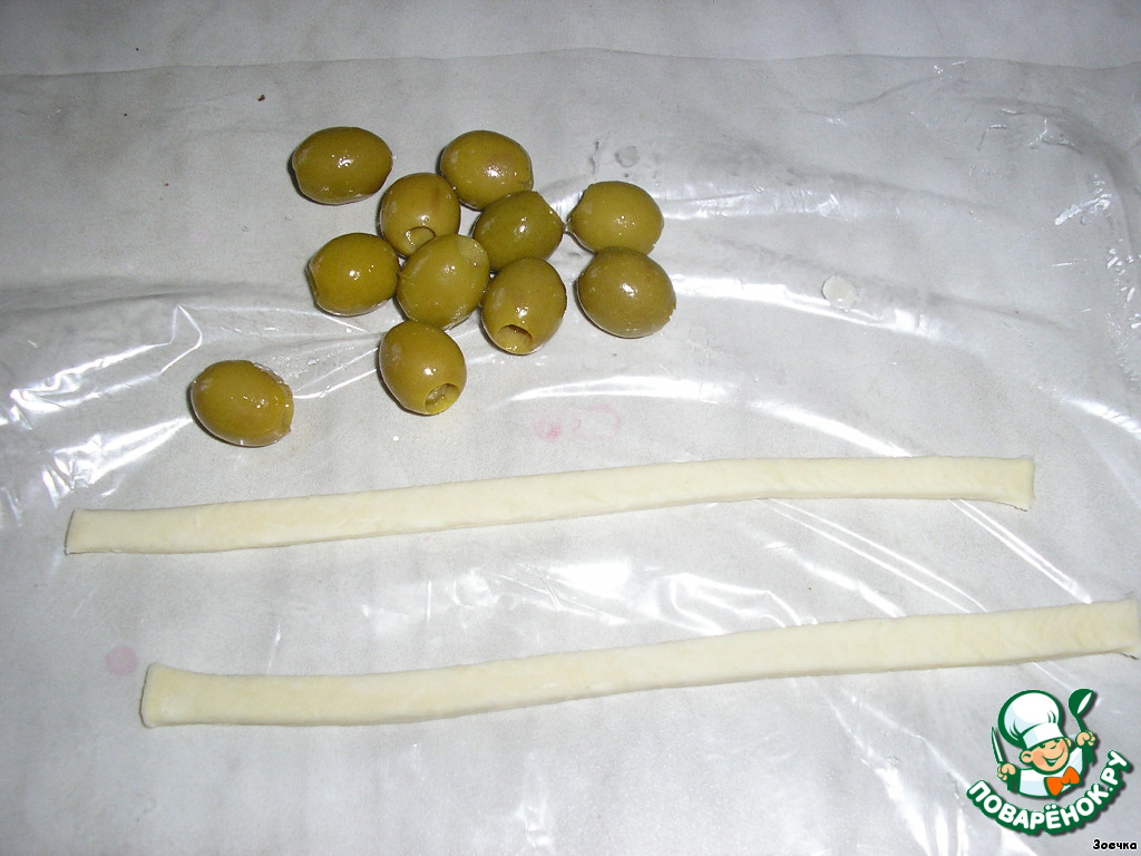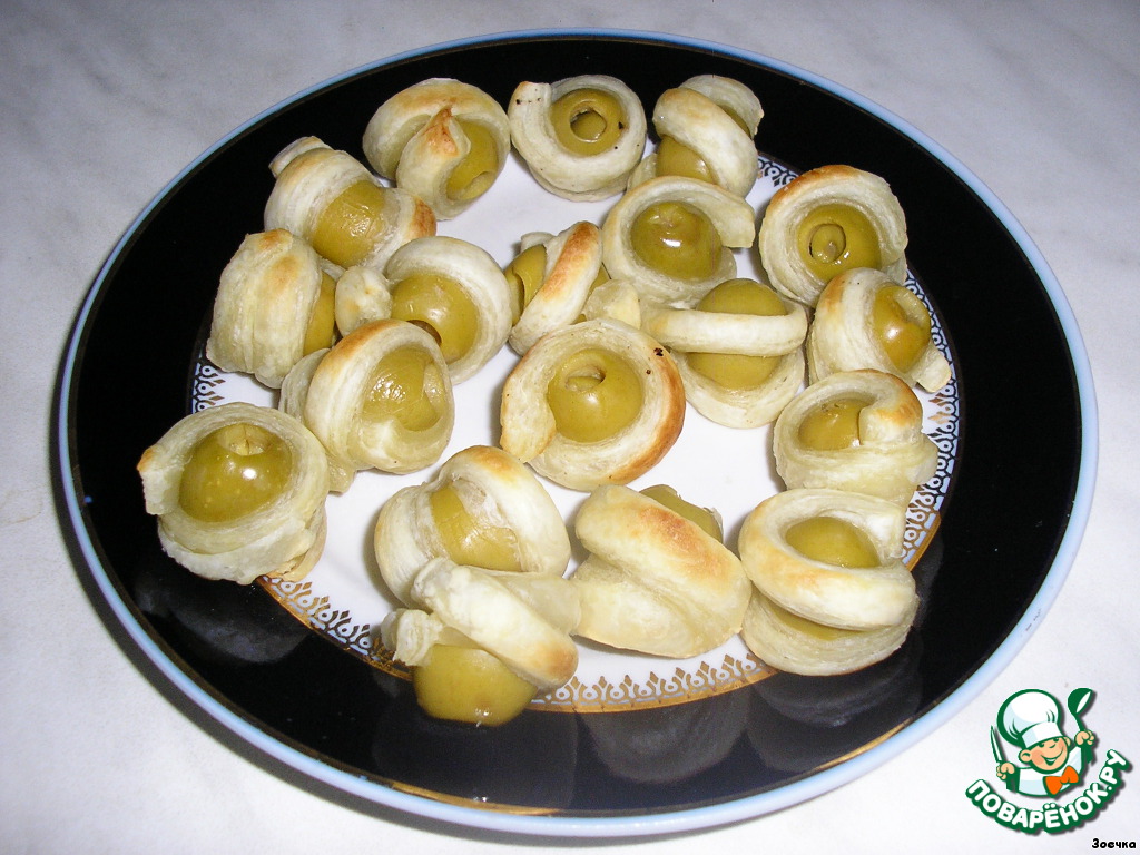 Чего только не заворачивали в слоeное тесто, вот и я решила поэкспериментировать, тем более остался у меня маленький кусочек - ни туда, ни сюда. По сайту поискала, с оливками ещe не делали...