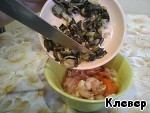 Жареные грибы присоединяем к этому фаршу, перемешаем.