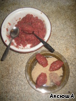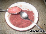 С помощью двух столовых ложек лепим из фарша "биточки" миндальной формы.