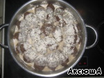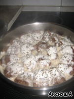 Ставим "биточки" на средний огонь, заливаем соусом.