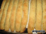 Поставить в духовку при температуре 180-200 град на 20-25 минут (до подрумянивания). Вынуть из духовки и сразу переложить на большое блюдо для остывания. Взбиваем крем - сгущенка, масло. Выкладываем трубочки - 4,4,3,2,1. Можно приготовит крышу из печенья или выпечь из этого же рецепта тонкий пласт для крыши. Варианты на ваше усмотрение. Прослаиваем кремом (обильно).