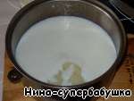 Желток взбить с оставшимся молоком и прогреть до загустения. Ни в коем случае не доводить до сильного кипения.