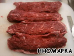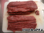 Отбейте кусочки мяса, обернув их в пищевую пленку. Мясо посолите, поперчите.