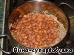Фасоль откинуть на дуршлаг и добавить в кастрюлю.