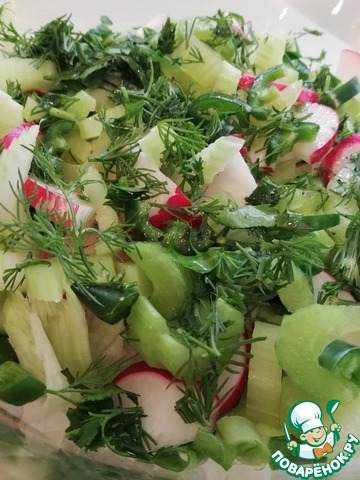 Огурцы, редис и сельдерей нарезаем, как нравится