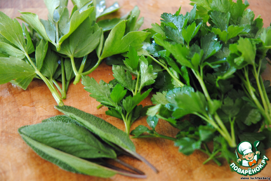 - Зелень (свежая: петрушка, любисток, шалфей) — 1 пуч.