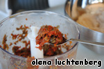 Вяленые томаты и каперсы измельчить ножом на доске или в процессоре.