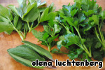 Свежие травы – немного любистока, еще меньше шалфея и сколько не жалко петрушки, измельчить.