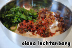 Лук, вяленые томаты, каперсы, травы и паприку соединить с фасолевым пюре, хорошо вымешать, по надобности добавить соль и перец.
