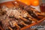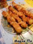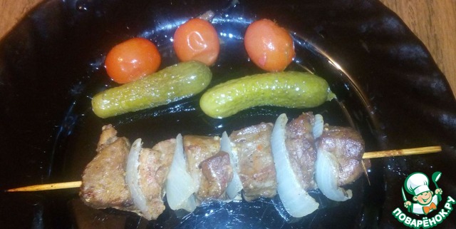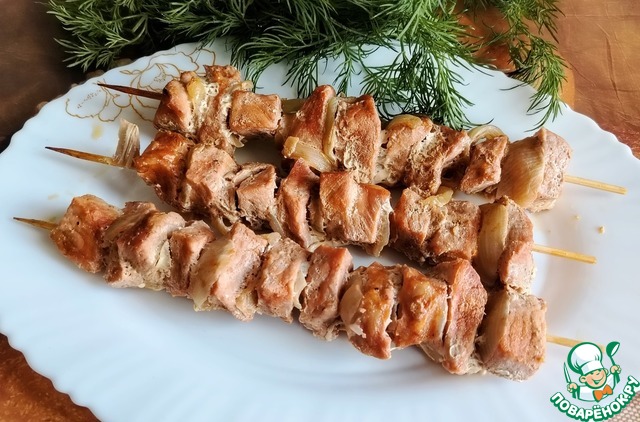Нанизываем на деревянные шпажки, чередуя мясо и лук (опять же на ваш вкус: так же можно помидор и т.п.)