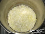 Пока варится наша каша, займемся йогуртным (курутом)соусом. В маленькой кастрюле обжариваем до золотистости лучок и чеснок.