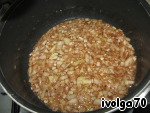 В другой большой кастрюле в небольшом количестве масла обжариваем лук и чеснок, до прозрачного состояния
