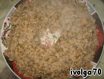 Так же по кругу укладываем мясо с подливой (Я лично предпочитаю подливу с фаршем).