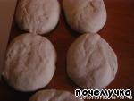 Наше тесто подошло, выкладываем его на стол, который я ничем не посыпаю и не смазываю, формирую булочки, которые я выкладываю на противень. Булочки накрываю стретч-плeнкой и оставляю примерно на 50 минут для расстойки.