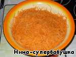 Морковь очистить и натереть на терке для корейской моркови. Присолить и отставить.