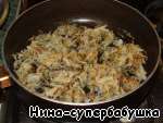 Добавить мясо и лук к моркови. Перемешать.
