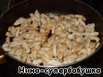 Лук нарезать полу- или четвертькольцами и обжарить в растительном масле до красивого золотистого цвета. Выложить лук в мисочку.