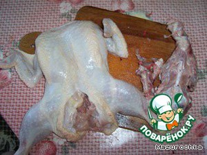 • Разморозить курицу под струей холодной воды и вынуть кости из куриной тушки