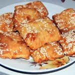 Вкуснющие слоeные квадратики из творожно-дрожжевого теста со сливочно-сырной прослоечкой, обсыпанные кунжутом. Попробуйте, эта выпечка, ну, просто необыкновенная!!!