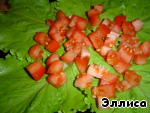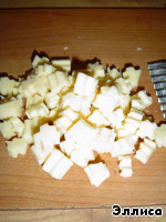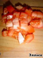 Помидоры нарезаем кубиками, маслины оставляем целыми.
