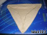 Раскатать тесто в круг, сложить края таким образом, чтобы получился треугольник.