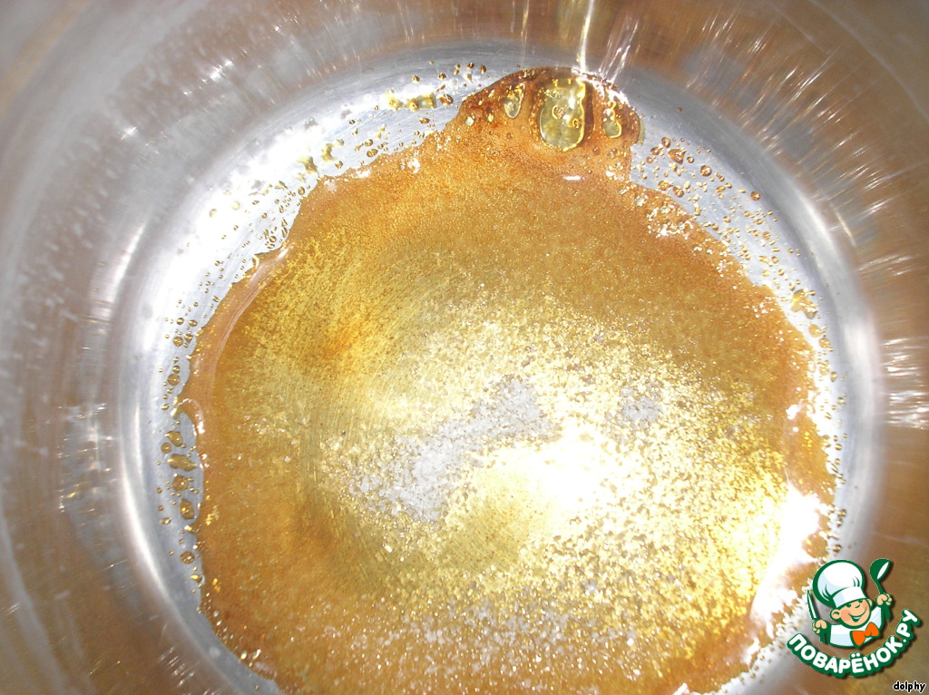 Залить водой. Я заливала кипятком, чтобы потом не мучаться и не растворять карамельку полчаса )))